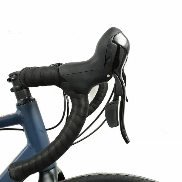 Géométrie confort avec une douille de direction plus haute et un top tube plus court offrant une position plus droite qu’un cadre route classique.