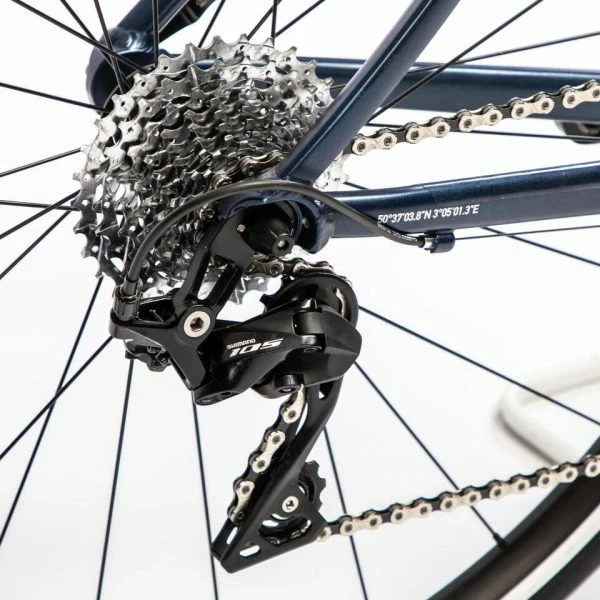 Cadre aluminium à épaisseur variable, transmission Shimano 105, roues Fulcrum